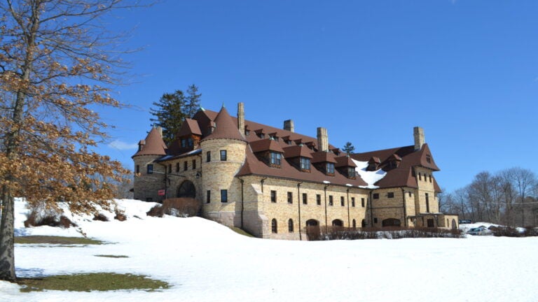 A small one-way path leads to the crest of a snow-covered hill where the Larz Anderson Auto Museum sits in Brookline. The converted carriage house looks like a castle, picked up and moved across the Atlantic from France.