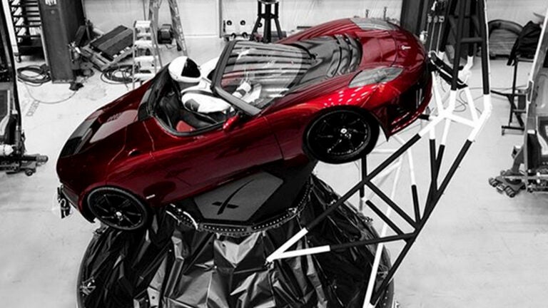 Test flights usually carry steel or concrete for cargo, or mundane experiments — nothing valuable in case the rocket blows up. But aboard the Falcon Heavy for Tuesday’s demo is Musk’s red Tesla Roadster. A figure is in the driver’s seat, with the right hand on the wheel and the left arm resting on the convertible’s door.