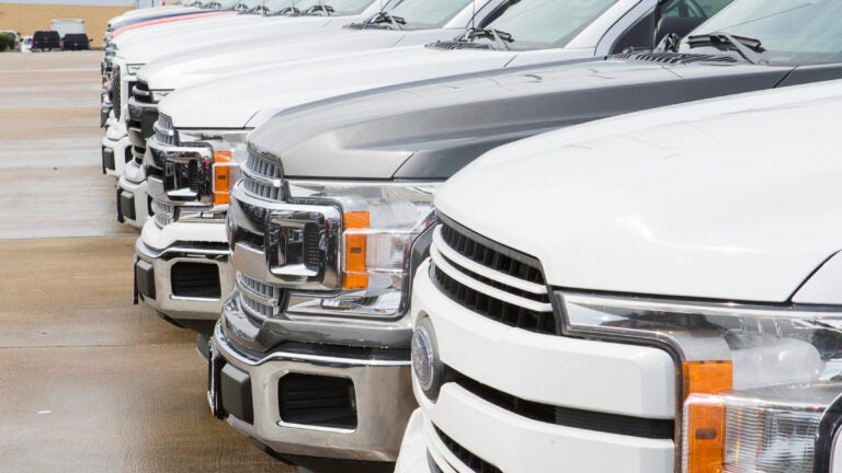 U.S. sales of new cars and trucks fell 2 percent in February to 1.3 million, automakers said Thursday.