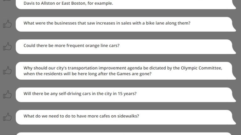 The questions have been posted on the Go Boston 2030 website for public perusal and engagement. Its interactive features give users the ability to read and “like’’ questions, and those who participated in the Question Campaign can track the progress of their query.