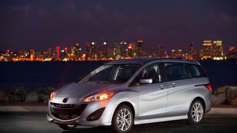 <p>The Mazda5 starts at $19,625 for a manual transmission. For $1,200, you can add a seven-inch overhead monitor with a remote control and wireless headphones.</p>