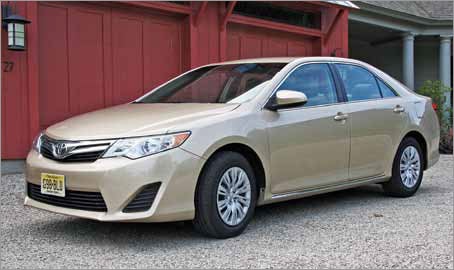 The car in question is today’s test car, a perfectly ordinary 2012 Toyota Camry LE. Mrs. G’s problem is the color: Sandy Beach Metallic. It’s something I’d call “gold,’’ and maybe comment that it could use a pinstripe to break up the color on the car’s slab-sided design.