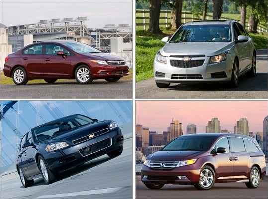 <h3><a href=”http://www.imperialcars.com/”>2012 Chevrolet Impala LT</a></h3> <p>The Impala’s V6 engine provides 18 city miles per gallon and 30 highway miles per gallon. It has dual-zone manual climate controls and flip-and-fold-flat rear seat. The Impala is on sale at Imperial Cars for $21,544, a $6,700 discount.</p><p>Imperial also has sales on Ford, Dodge, and and Jeep vehicles.</p>