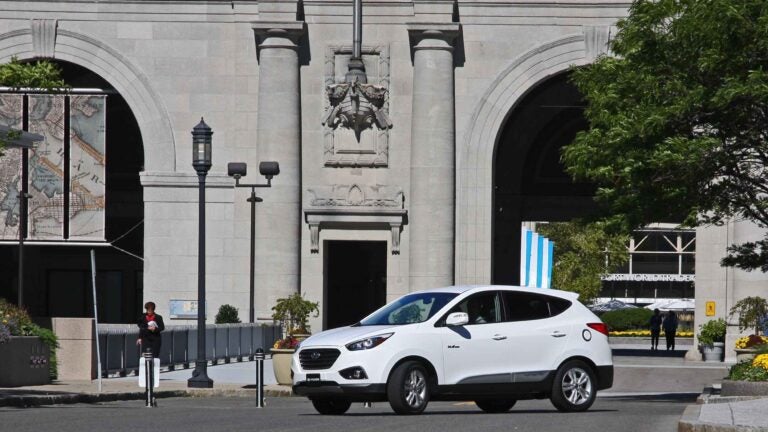 We went cruising up A Street, crossed over to D Street, and pretended that Southie was our home town Monday afternoon as we drove one of Hyundai’s fuel cell-powered Tucson SUVs through Boston’s streets.