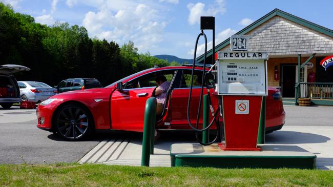Photos of the Tesla P85D on its journey up Mt. Washington: