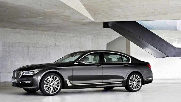 Spin your index finger clockwise in front of the dash. You’ve just raised the stereo volume. Brush your palm to the right. You ignored your mom’s phone call (not nice). The 7-Series has gesture controls that let you handle a few brief commands without voice. The key fob is not a key fob. It’s a touch screen-enabled pocket app that can check on your car’s vitals. There are two perfume canisters. The entry lighting doesn’t throw a spotlight underneath the side mirrors. It shoots out an angled walkway path several feet long from an insanely precise beam underneath the door sill. The body is up to 190 pounds lighter and stronger than ever because carbon fiber stampings have been bonded to aluminum and steel. The moonroof has glass etchings that illuminate to mimic a night sky. Rear passengers can get a sports massage. The rear wheels steer the car. Anti-roll bars adjust electronically. GPS satellites keep the 8-speed transmission in the proper gear. Most of this has never been done before.