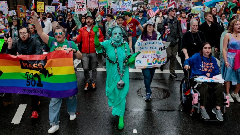 In the wake of last month's "No Kings but Yaaas Queen” rallies, Mass. residents returned to the streets Thursday. Craig F. Walker/Globe Staff