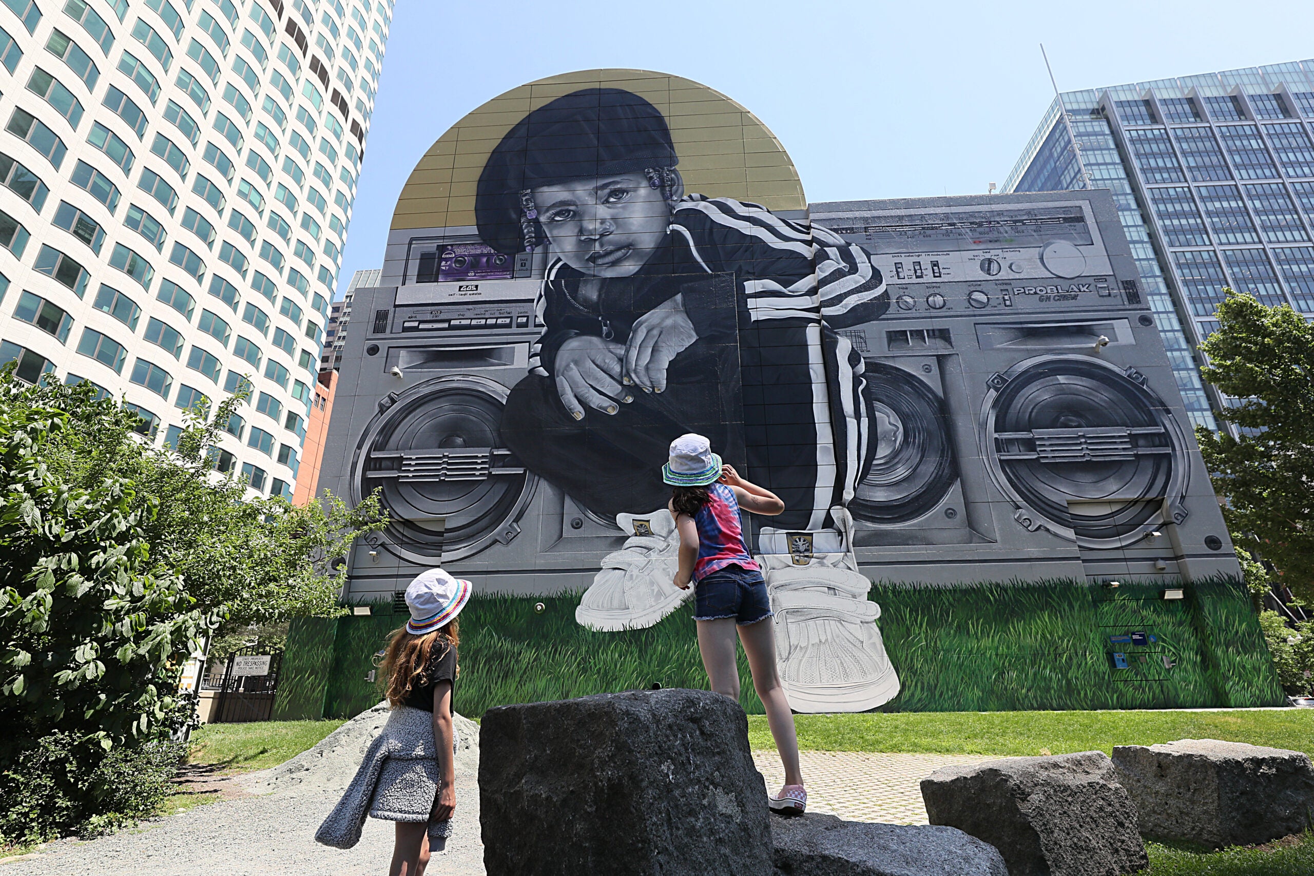 “First off, it’s visually stunning in both scale and color. Boston is so often portrayed by its Revolutionary War time history. This mural shows Boston’s more recent history, one that evokes nostalgia from myself and I assume many others. Finally, the details are brilliant, especially the inclusion of Raekwon’s Purple Tape in the boombox.”