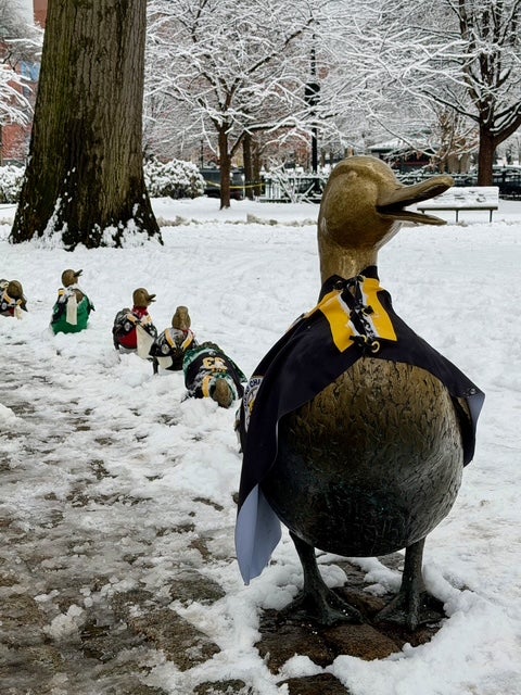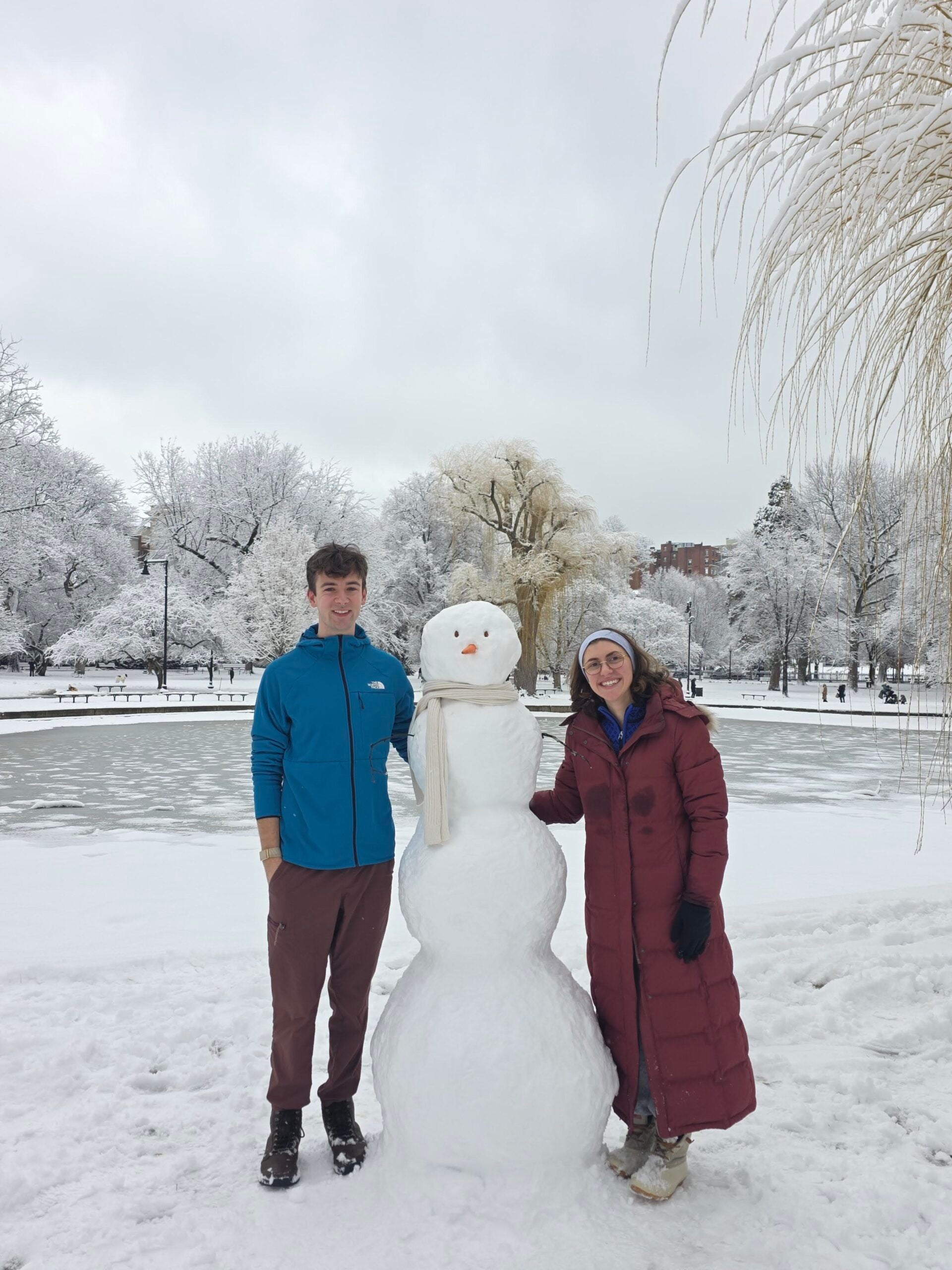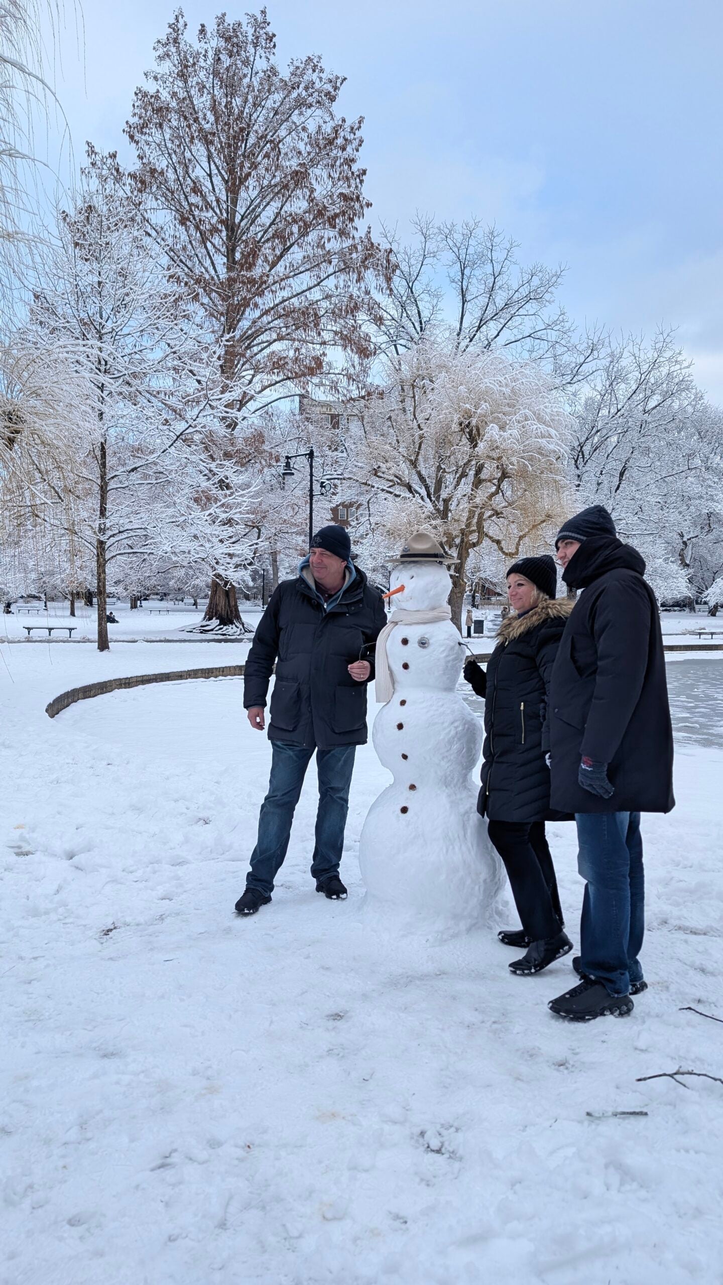 “My boyfriend and I got up early this morning to make a snowman in the public garden.” — Jaramie C. — Jaramie C. “Sneakers the dog with Sally the snowman.” — Jaramie C.“The park rangers who made a park ranger snowman.” — Jaramie C. “So many people stopped for a picture.” — Jaramie C.“We made a friend who donated her striking red hat and found chestnut balls for the buttons.” — Jaramie C.