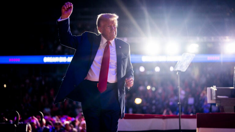 Former President Donald Trump, the Republican presidential nominee, holds his final campaign rally in Grand Rapids, Michigan, after midnight on Tuesday morning, Election Day, Nov. 5, 2024. Doug Mills/The New York Times