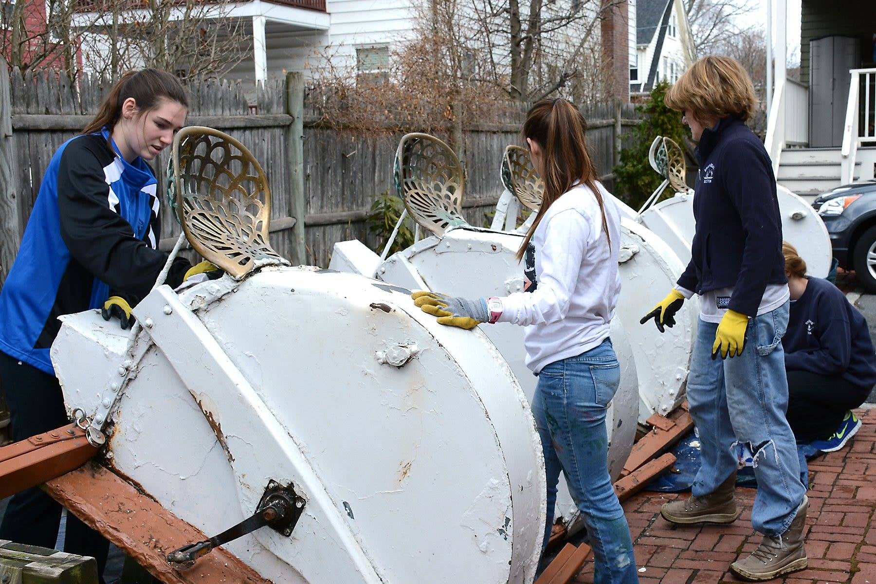 Some of the work is predictable: sanding, varnishing, painting. Other projects depend on what took the most wear and tear during the season: rebuilding a paddle-box, replacing benches, or restoring decorative brass.