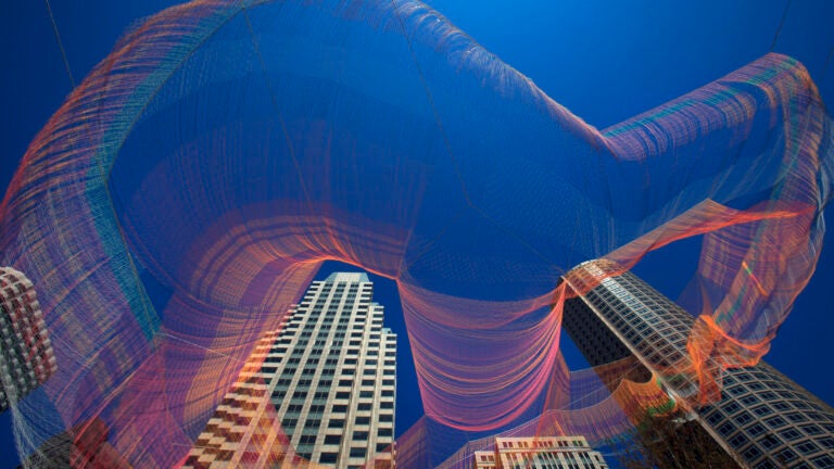 Several hundred feet above Rose Kennedy Greenway, there’s now something impossible to miss: Janet Echelman’s sweeping fiber art sculpture.