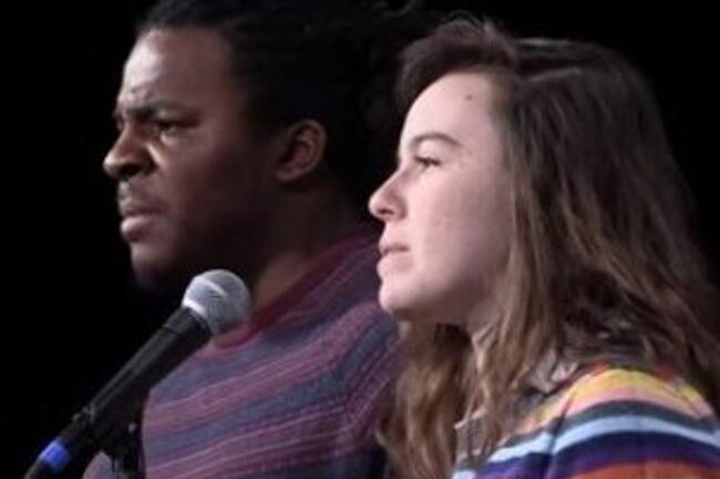 No, she’s not the next Rachel Dolezal. She’s a spoken word artist who, with Darius Simpson, recently performed a poem called “Lost Voices’’ to discuss white and male privilege.
