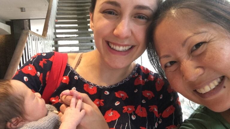 She doesn’t anymore. Kim Bentley’s daughter Jovie was born a couple of weeks ago, and the 8-day-old infant accompanied her mom to a champagne toast with the cast before Sunday’s closing night. (Patten and ART artistic director Diane Paulus held the baby.)