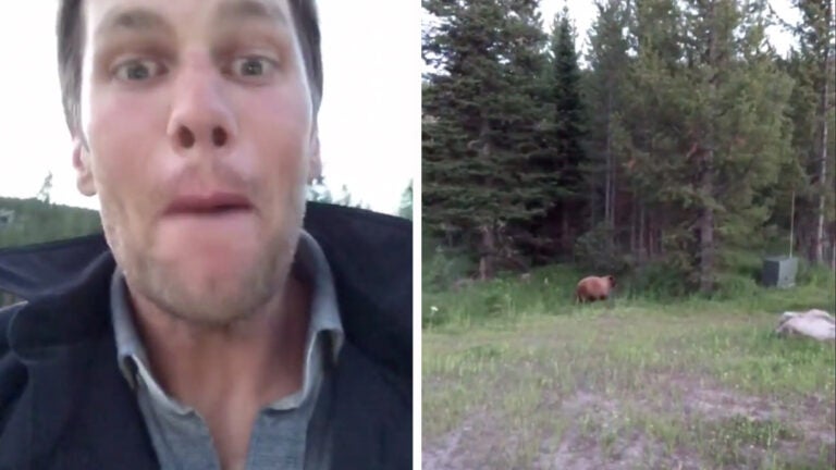 The Patriots quarterback shared an Instagram video of a bear moving around in the trees not far from where the quarterback himself was standing. Brady reacted with an enthusiastic but whispered, “There’s a bear!” while someone off-camera made loud clapping sounds, presumably to scare the bear off.