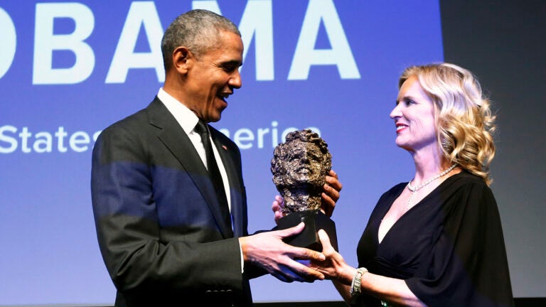 NEW YORK (AP) — Former President Barack Obama was honored with the Robert F. Kennedy Human Rights Ripple of Hope Award at a gala in midtown Manhattan Wednesday evening.