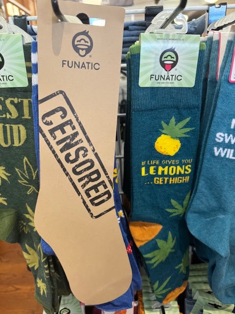 I saw this display of socks in a store this week. One sock was covered with cardboard, like an old Playboy in a convenience store in the ’80s.
