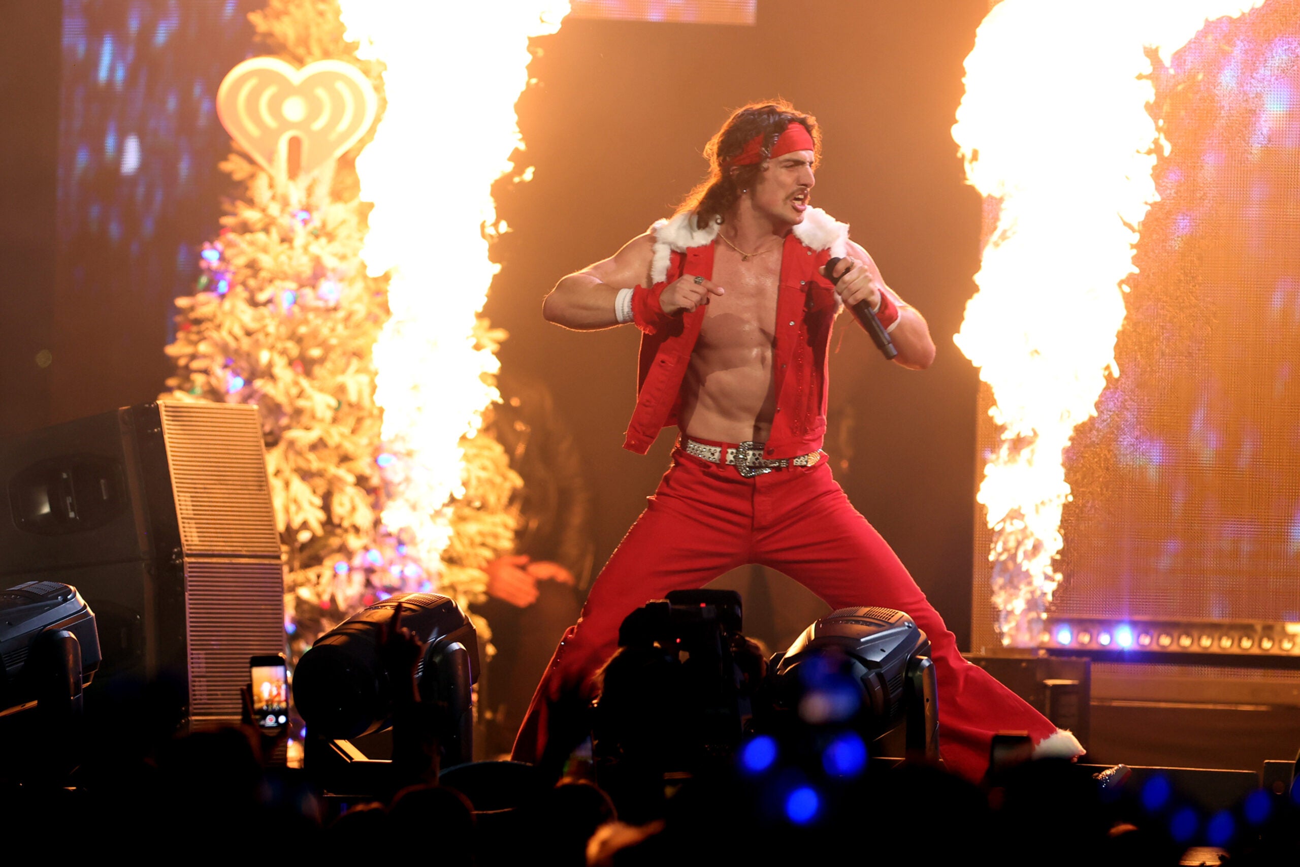 The Kid LAROI, meanwhile, had an actual stage setup, which in this case meant a bare-bones riser that looked good in silhouette. Just like when he played the Jingle Ball back in 2022, the Australian singer had no voice, but this time it wasn’t because he’d wrecked his voice days earlier. A technical glitch left his backing tracks loud and clear but his microphone inaudible. To the audience, at least; he performed as if completely unaware of the situation, working hard with no output. But his vocals popped out two songs in, just in time for him to Whammageddon the crowd with “Last Christmas” and navigate the shifting tempos of “Stay” without losing momentum.