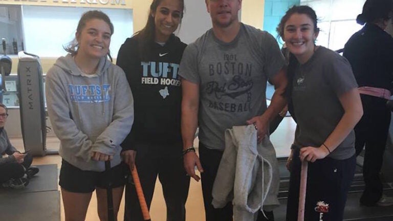 Matt Damon works out at Tufts