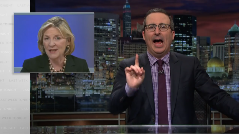 John Oliver has never been shy about tossing around coarse language, whether it’s directed at a politician or the entire year of 2016. But on Sunday’s episode of Last Week Tonight, the HBO host’s profanity had an unlikely target: WGBH journalist and Beat the Press host Emily Rooney.Sunday’s episode was a bit of a throwback, with Oliver returning to the topic that put his show on the map back in 2014: net neutrality. At the start of the segment, Oliver ran a June 2014 Beat the Press clip (below and NSFW, obviously) in which Rooney discussed Oliver’s rise from “relative obscurity” thanks to his net neutrality coverage.