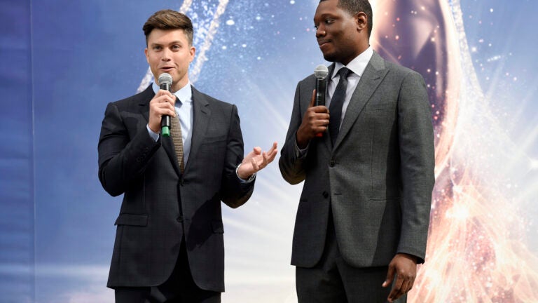 Hosts Che and Jost traffic in political satire on “Weekend Update,” so it’s reasonable to expect they will here as well. But they played it cool before the awards, with Jost saying “there might be some, and there might not.”