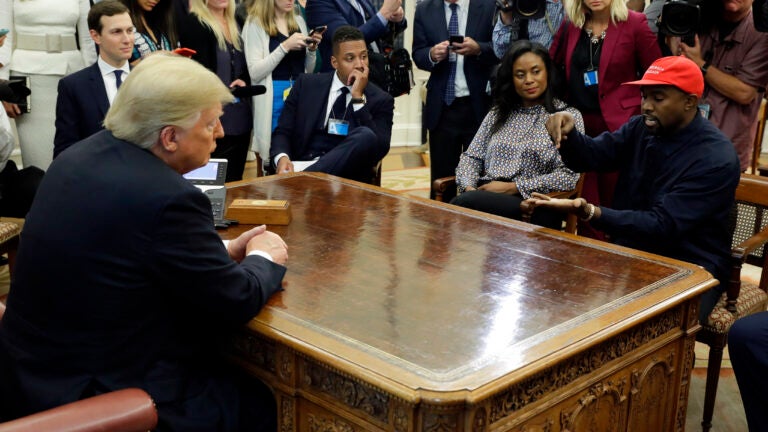 Usually DONALD TRUMP has the spotlight in the Oval Office, but apparently not when KANYE WEST visits. The rapper, ostensibly there to discuss prison reform, delivers a 10-minute speech about the president, politics, and of course himself. “You are tasting a fine wine,” he says, referring to, er, his truly. “It has multiple notes to it.” Onscreen, the ultimate chameleon, LADY GAGA, reinvents herself yet again with a stunning turn in BRADLEY COOPER’s acclaimed “A STAR IS BORN. ” And some fine-art news: The elusive BANKSY pulls a stunt for the ages with his self-shredding painting at a Sotheby’s auction. But was that him, in the audience? Maybe.