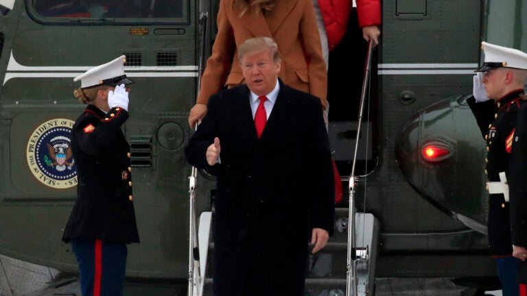 Trump viewed Sunday’s matchup between the New England Patriots and the Los Angeles Rams from the comfort of his private golf club in West Palm Beach. Upon arrival, he and his wife, Melania, were treated to a mini-concert by the Florida Atlantic University Marching Band.