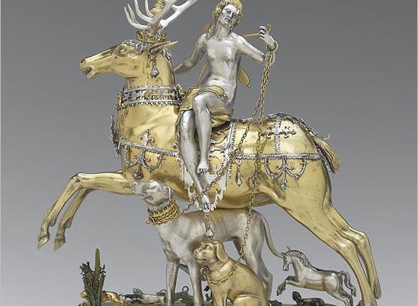 On the same day, the museum opens something completely different, the new Kunstkammer Gallery. Ostrich egg? Amber statuette of The Virgin? Whatever the small treasure, in 16th and 17th-century Europe, it was placed in a kunstkammer, or “cabinet of curiosity,’’ designed to show off artistic and natural wonders. The new gallery displays 123 collectors’ items made of materials like coconut shell, coral, amber, ivory, mother of pearl, and rock crystal. Some reveal social conventions of the day, such as the gorgeous “Diana and Stag Automaton,’’ which played a role in Trinkspeil, a courtly drinking game. The removable heads of the stag and hunting dog were filled with wine, and the wind-up automaton was sent for a spin around the banquet table. The person closest to its stopping point was required to drink.