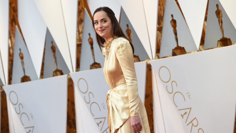 Dakota Johnson walked the red carpet in a high-necked, butter-colored Gucci gown with an oddly placed bow.