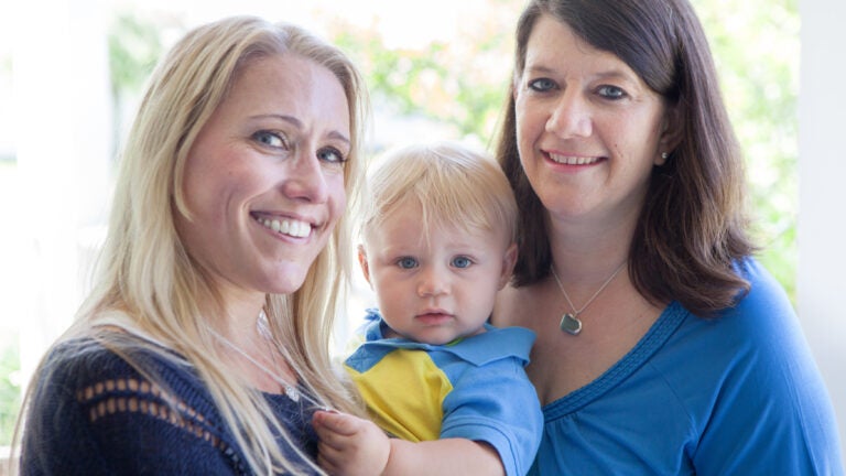 Brady was born last August at Cooley Dickinson Hospital in Northampton, with both couples in the delivery room. As Kieras-Ciolkos labored for 10 hours, she deferred to Hukowicz and Zoll on key medical decisions, including how quickly to induce birth. Both women still tear up as they recall Brady being delivered with the umbilical cord wrapped around his neck. Once doctors made sure he was fine, Kieras-Ciolkos held him briefly then gave him to Zoll, who cut the cord.