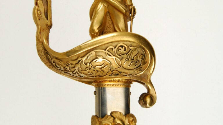 Topping the 25 Civil War swords in the sale was the one worn by Brigadier General James Haskin that brought $109,250 against a $90,000-$110,000 estimate. The rarest of all statue-hilted swords, it has a full-figured Union Army officer thrusting a saber through the open mouth of a serpent (representing the Confederacy).