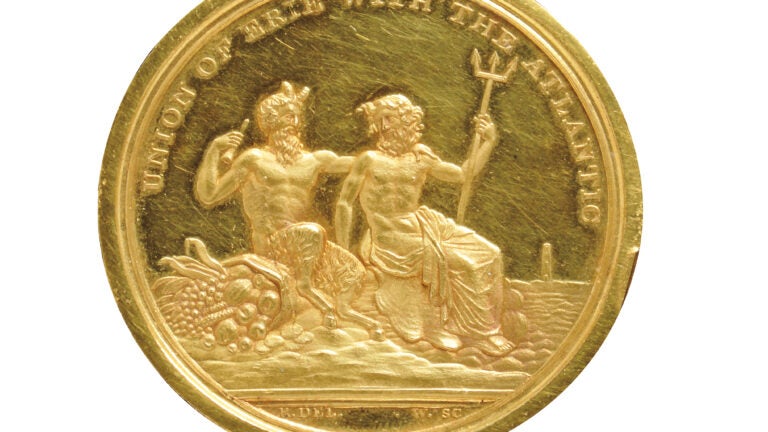 A Federal era trifecta was achieved at Skinner’s American Furniture & Decorative Arts Auction last Sunday when a masterpiece of American furniture, a historical gold medal, and a silk needlework picture of George and Martha Washington were the top sellers, each for well above their estimates.