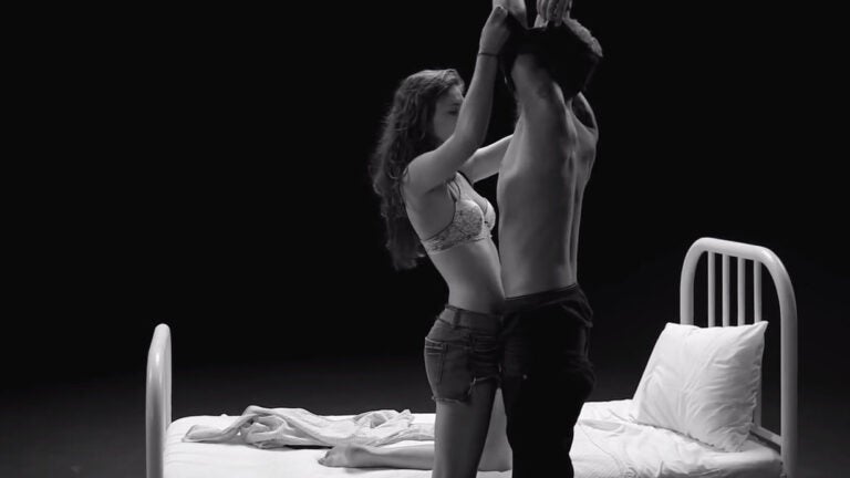 Pilieva wastes no time in mood-setting, putting the pairs in a black-walled room with a simple bed in the center of the floor. Participants shake hands, nervously introduce themselves, and go for it.