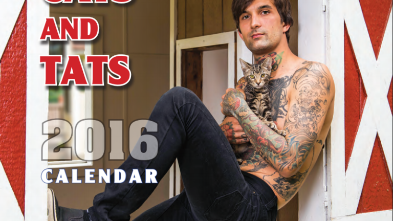 As first reported by NECN, the Monadnock Kitty Rescue and Adoption in Jaffrey, New Hampshire decided to sell a “Cats and Tats’’ calendar to raise funds for a new facility after finding out their landlord would not be renewing the shelter’s lease for 2016. The calendar features 12 photos of inked-up friends of the shelter snuggling with some of its feline residents.