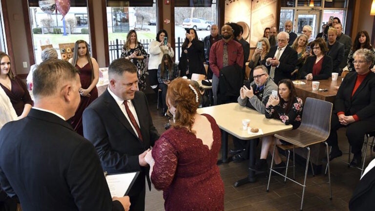 WORCESTER, Mass. (AP) — A Massachusetts couple reunited for extra-sweet wedding vows at the same Dunkin’ Donuts where their young love splintered nearly 30 years ago.
