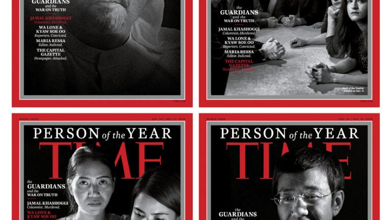 The “guardians” are slain Saudi journalist Jamal Khashoggi; the Capital Gazette in Annapolis, Maryland, where five people were shot and killed at the newspaper’s offices in June; Philippine journalist Maria Ressa, who has been arrested; and two Reuters journalists detained in Myanmar for nearly a year, Wa Lone and Kyaw Soe Oo.