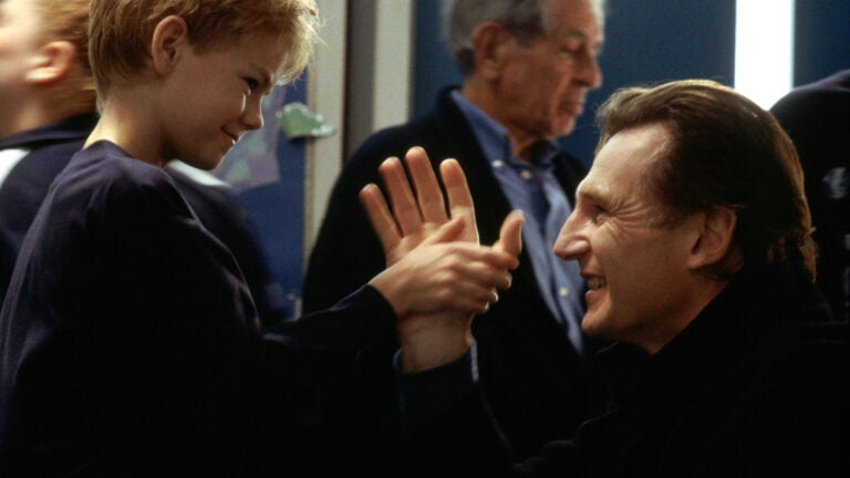 LONDON — Liam Neeson and Thomas Brodie-Sangster, playing a father and his stepson, are sitting on a bench overlooking the Thames, discussing love. Yes, fans of the 2003 Richard Curtis movie “Love Actually,” you know the scene.