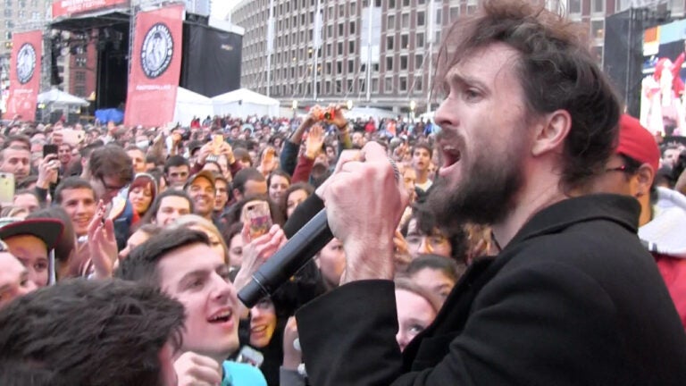 During the Edward Sharpe set, frontman Alex Ebert cut up the pavement with some photographers in the pit before climbing over the barrier into the crowd. Thankfully Boston.com had its camera in the man’s ear to capture it all.