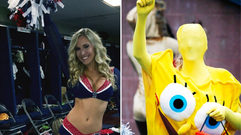 Among Patriots cheerleaders dressed as superheroes and animals, Cadigan’s SpongeBob Squarepants costume stood out.