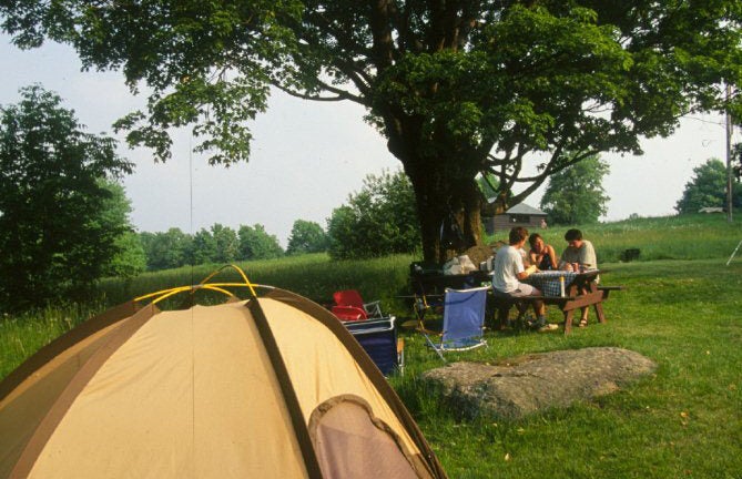 Key items to bring include a tarp or ground cloth and a rug to put at the entrance of the tent to reduce tracked-in dirt. For comfort, bring a sleeping pad. (But not a swimming pool air mattress; they are noisy and slippery, and the air inside gets cold at night.) Don’t forget pillows. We also recommend head lamps (so your hands are free) and citronella candles. Resist the impulse to bring firewood from home; it’s not allowed at campgrounds, since it might spread invasive species.