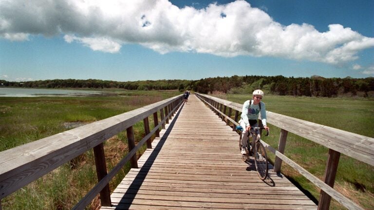 The Cape Cod Rail Trail might receive the most fanfare, but one of my favorite summer rides is just off the trail in Eastham. Start on Main Street in Orleans in the parking lot next to Orleans Cycle and head out on the CCRT toward Eastham. Soon you are enveloped by the velvety marsh, where red-winged blackbirds sit atop the swaying cattails. At Locust Road, veer right off the trail and cross over Route 6 to reach the Cape Cod National Seashore visitors center.