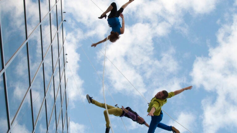 The most spectacular visual performance may be San Francisco-based Bandaloop, an aerial dance troupe that performs twisting and turning routines on ropes, playing in places such as Yosemite National Park and in urban centers. In Providence, the dancers will perform high against the side of an office building, directly over the heads of spectators, said Kathleen Pletcher, founder and artistic executive director of FirstWorks.