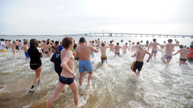 The largest plunge in the country (pictured), hosted by the Maryland State Police as a fund-raiser for Special Olympics Maryland, is held later in January, this year on the 26th. In 2012, some 11,000 plungers jumped into the Chesapeake Bay, raising $2.6 million.