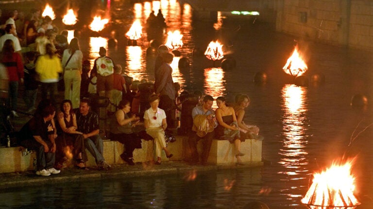 This simple concept, lighting bonfires in the rivers of downtown Providence, has become a wildly successful public art project, drawing tens of thousands of people to each lighting. It runs more than a dozen nights a year, and on some nights stages are set up that feature free live music or dancing. Despite the crowds, the mood is calm and relaxed as people chill out listening to music piped into the riverway, watching fire dancers or gazing at the flames from the shore.