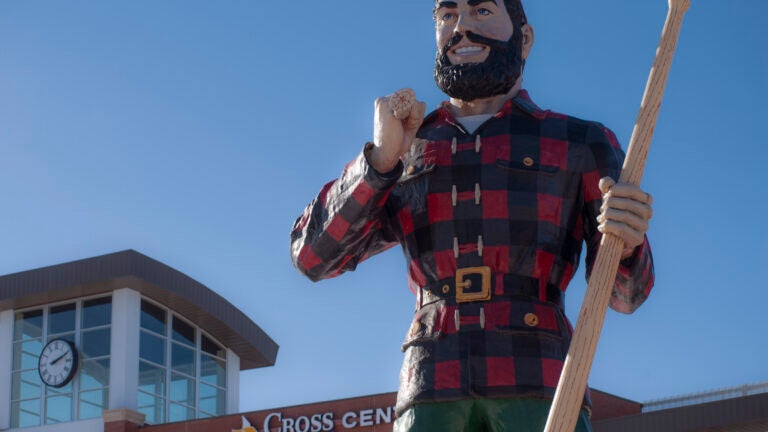 There is a 35-foot-high, 3,700-pound Paul Bunyan towering over folks in a certain New England city, which claims to be the birthplace of the legendary logger.