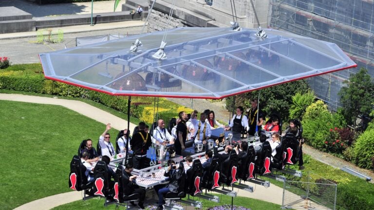 “Dinner in the sky” is an “unique occasion” to discover Brussels’s high cuisine and enjoy a spectacular view of the city from the air.