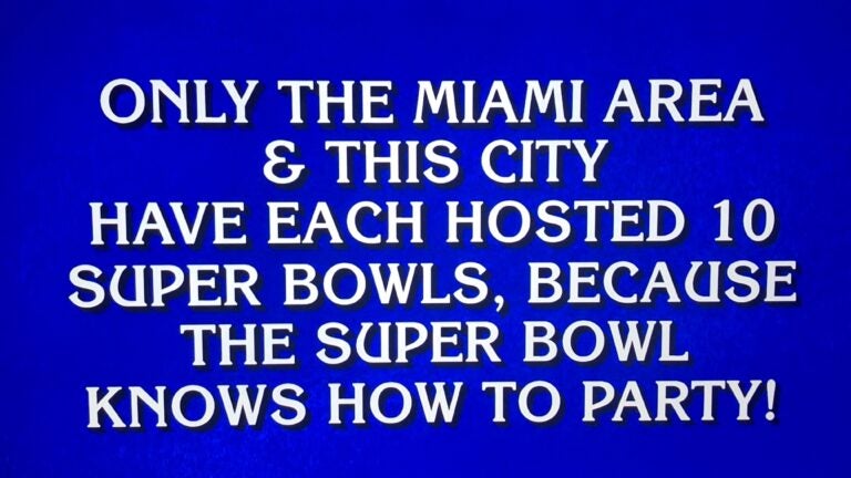 Thursday night’s first round of “Jeopardy!” included categories such as “State Foods” and the vaguely titled “Miscellaneous.” It also featured five questions on the Super Bowl. The focus wasn’t on this weekend’s game between the New England Patriots and the Los Angeles Rams, but instead on past games, players, and places. The three contestants were quizzed on topics such as the winner of Super Bowl III, the cities that have hosted the game most frequently, and the name of a two-time Super Bowl-winning quarterback for the Steelers. Check out the questions in the category below, then guess along with the contestants in the video at the bottom of the page.