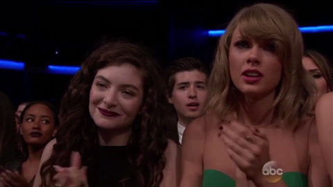 Taylor Swift sheds a tear after Selena Gomez performs her single “The Heart Wants What It Wants’’ at the American Music Awards.