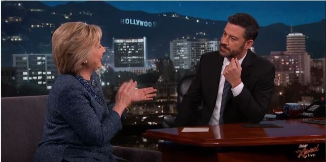 Clinton didn’t yet have that figured out, but she did have a concrete answer to Kimmel’s next question: Yes, she would win if she were running against her husband.