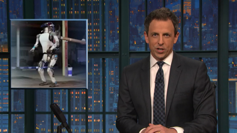 In case you missed it, Boston area robotics company Boston Dynamics debuted an updated version of its humanoid robot in a video on Tuesday—now the robot can withstand bullying. Naturally, our favorite wannabe Bostonian Seth Meyers made a joke about it on Wednesday’s Late Night. And — let’s give credit where it’s due — the kicker was actually really funny.